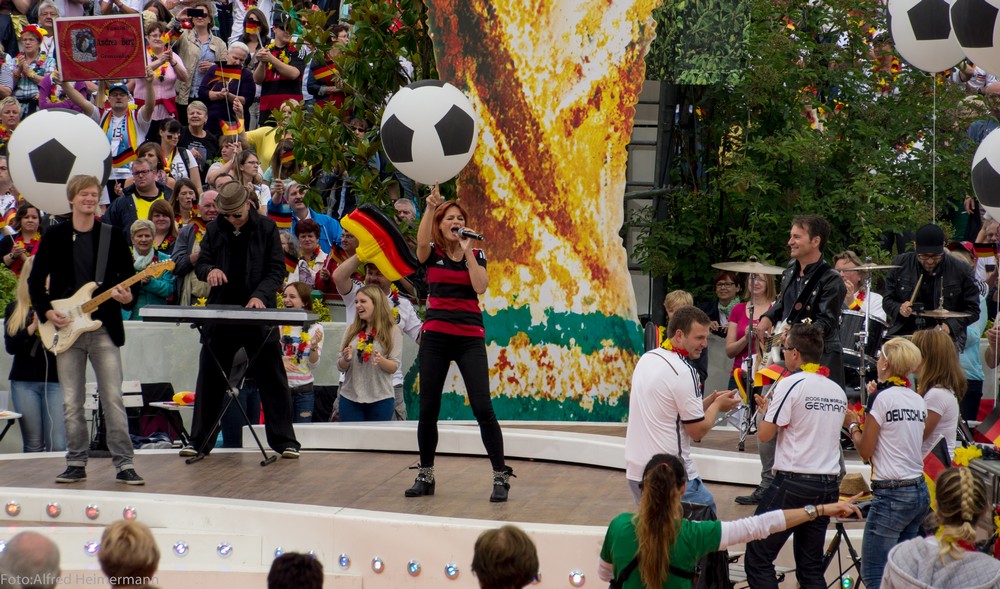 Am Tag des WM Endspiels zwischen Deutschland und Argentinien der Fernsehgarten unter dem Titel "FINALE". Die Höhner eröffneten die Finalparty, dann folgte mir 2 Liedern Andsrea, die im Shirt der DFB-Elf auftrat. Howie, NiKP und viele andere waren auch dabei.