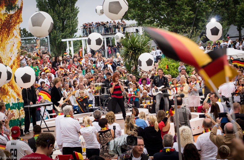 Am Tag des WM Endspiels zwischen Deutschland und Argentinien der Fernsehgarten unter dem Titel "FINALE". Die Höhner eröffneten die Finalparty, dann folgte mir 2 Liedern Andsrea, die im Shirt der DFB-Elf auftrat. Howie, NiKP und viele andere waren auch dabei.