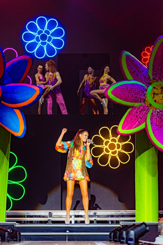 Ca. 5500 Besucher verfolgten die Premiere der Mosaik Tour von Andrea Berg. Über 3,5 Stunden erlebten die Fans eine bunte Show durch mehrere Zeiten und Welten. Viele wurde ausprobiert und einiges wird sicher noch verändert. Andrea war sehr aufgeregt und emetional.
