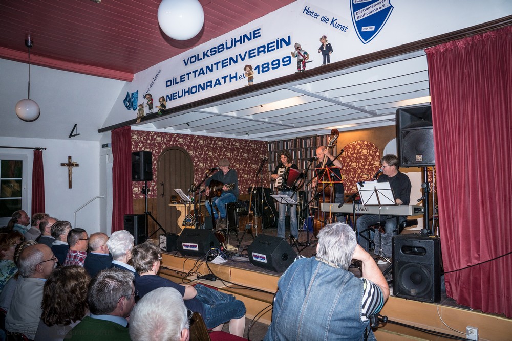 AntweilerGraf&Co Neuhohnrath 20.5.2016 Vor ausverkauftem Haus gastierte Antweiler Graf & Co in "de Brach" dem Theater vom Delitantenverein Neuhohnrath. Eingeladen zu diesem wunderbarem rheinischen Mundartskonzert hatte der Lohmarer Verein "sach hür es". Die 4 Musiker begeisterten mit ihren Liedern und der Vielfältigkeit von Instrumenten, jeder der Musikanten spielten viele verschiedene Instrumente in Perfektion. Es war wieder ein wunderbares Erlebnis. Eröffnet wurde das Konzert von einem jungen Nachwuchssänger "Machtin", der auch in kölscher Mundart seine ersten selbstgetexteten und komponierte Lieder mit seiner Gitarre und seiner tollen Stimme vortrug , es war sein erster öffentlicher Auftritt und das Publikum war begeistert. |