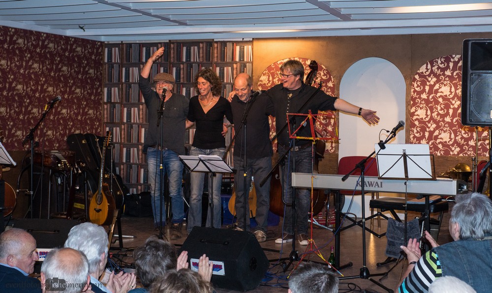 AntweilerGraf&Co Neuhohnrath 20.5.2016 Vor ausverkauftem Haus gastierte Antweiler Graf & Co in "de Brach" dem Theater vom Delitantenverein Neuhohnrath. Eingeladen zu diesem wunderbarem rheinischen Mundartskonzert hatte der Lohmarer Verein "sach hür es". Die 4 Musiker begeisterten mit ihren Liedern und der Vielfältigkeit von Instrumenten, jeder der Musikanten spielten viele verschiedene Instrumente in Perfektion. Es war wieder ein wunderbares Erlebnis. Eröffnet wurde das Konzert von einem jungen Nachwuchssänger "Machtin", der auch in kölscher Mundart seine ersten selbstgetexteten und komponierte Lieder mit seiner Gitarre und seiner tollen Stimme vortrug , es war sein erster öffentlicher Auftritt und das Publikum war begeistert. |