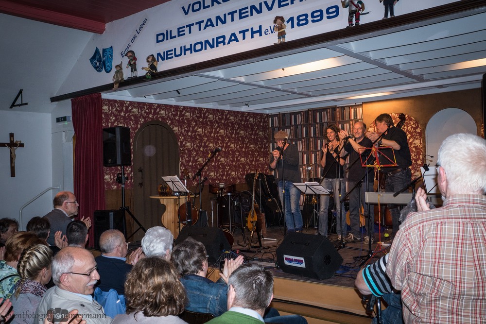 AntweilerGraf&Co Neuhohnrath 20.5.2016 Vor ausverkauftem Haus gastierte Antweiler Graf & Co in "de Brach" dem Theater vom Delitantenverein Neuhohnrath. Eingeladen zu diesem wunderbarem rheinischen Mundartskonzert hatte der Lohmarer Verein "sach hür es". Die 4 Musiker begeisterten mit ihren Liedern und der Vielfältigkeit von Instrumenten, jeder der Musikanten spielten viele verschiedene Instrumente in Perfektion. Es war wieder ein wunderbares Erlebnis. Eröffnet wurde das Konzert von einem jungen Nachwuchssänger "Machtin", der auch in kölscher Mundart seine ersten selbstgetexteten und komponierte Lieder mit seiner Gitarre und seiner tollen Stimme vortrug , es war sein erster öffentlicher Auftritt und das Publikum war begeistert. |
