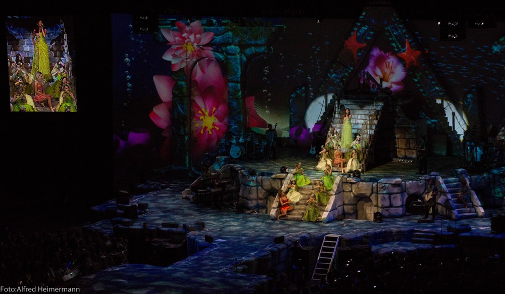 Atlantis Berlin 2 O2 World Berlin 23.2.2014 Auch am Sonntag war die Arnea voll, als um 16 Uhr die Atlantis Show von Andrea Berg begann. Andrea war in ausgelassener Stimmung und freute sich auf die Berliner und die geizten nicht mit Applaus und Begeisterung. |