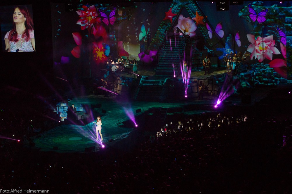 Atlantis Berlin 2 O2 World Berlin 23.2.2014 Auch am Sonntag war die Arnea voll, als um 16 Uhr die Atlantis Show von Andrea Berg begann. Andrea war in ausgelassener Stimmung und freute sich auf die Berliner und die geizten nicht mit Applaus und Begeisterung. |