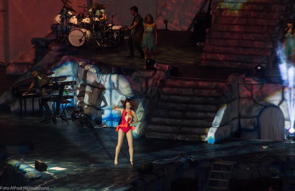 Atlantis Berlin 2 O2 World Berlin 23.2.2014 Auch am Sonntag war die Arnea voll, als um 16 Uhr die Atlantis Show von Andrea Berg begann. Andrea war in ausgelassener Stimmung und freute sich auf die Berliner und die geizten nicht mit Applaus und Begeisterung. |