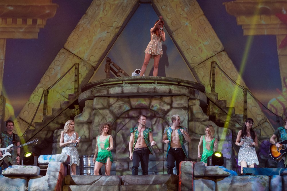 Atlantis Finale HalleWestfalen Gerry Weber Stadion Ausverkaufte Gerry weber Stadion beim Tourfinale von Atlantis in Halle/W. Mit Verspätung, weil man die Sommerzeit nicht eingeplant hatte, ging die Show los und es wurde eine schöne Abschlußshow. Die Crew hatte viele Andreafiguren verteilt, was Andrera dann überraschte und es gab einige weitere Abweichungen im Programm. |