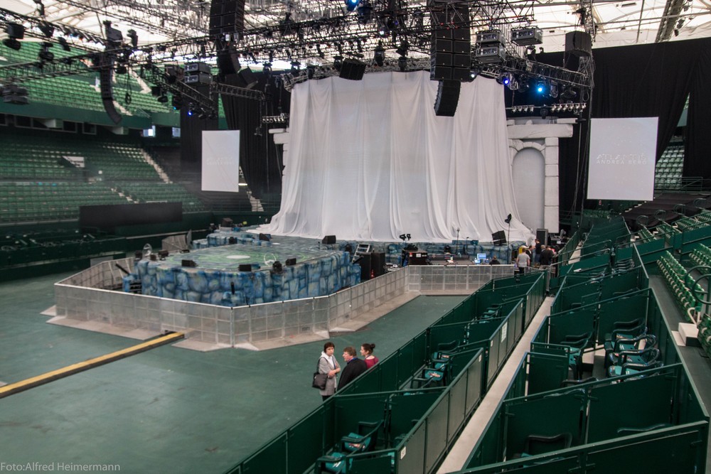 Atlantis Finale HalleWestfalen Gerry Weber Stadion Ausverkaufte Gerry weber Stadion beim Tourfinale von Atlantis in Halle/W. Mit Verspätung, weil man die Sommerzeit nicht eingeplant hatte, ging die Show los und es wurde eine schöne Abschlußshow. Die Crew hatte viele Andreafiguren verteilt, was Andrera dann überraschte und es gab einige weitere Abweichungen im Programm. |