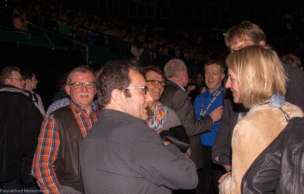 Atlantis Finale HalleWestfalen Gerry Weber Stadion Ausverkaufte Gerry weber Stadion beim Tourfinale von Atlantis in Halle/W. Mit Verspätung, weil man die Sommerzeit nicht eingeplant hatte, ging die Show los und es wurde eine schöne Abschlußshow. Die Crew hatte viele Andreafiguren verteilt, was Andrera dann überraschte und es gab einige weitere Abweichungen im Programm. |