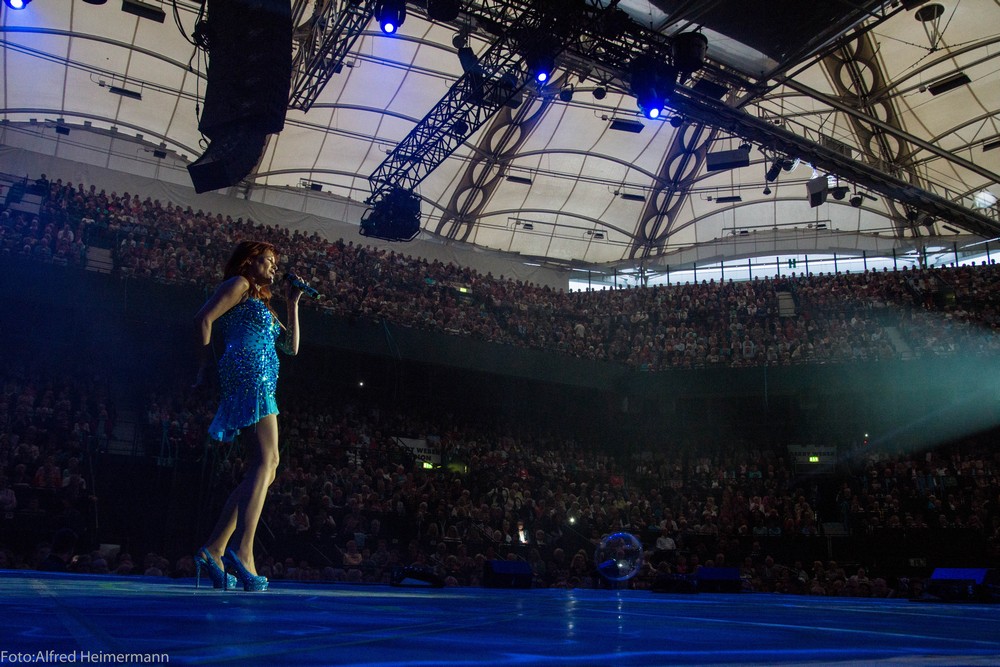 Atlantis Finale HalleWestfalen Gerry Weber Stadion Ausverkaufte Gerry weber Stadion beim Tourfinale von Atlantis in Halle/W. Mit Verspätung, weil man die Sommerzeit nicht eingeplant hatte, ging die Show los und es wurde eine schöne Abschlußshow. Die Crew hatte viele Andreafiguren verteilt, was Andrera dann überraschte und es gab einige weitere Abweichungen im Programm. |