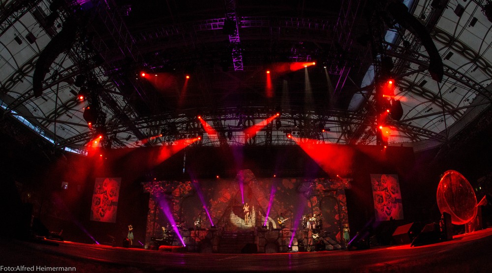 Atlantis Finale HalleWestfalen Gerry Weber Stadion Ausverkaufte Gerry weber Stadion beim Tourfinale von Atlantis in Halle/W. Mit Verspätung, weil man die Sommerzeit nicht eingeplant hatte, ging die Show los und es wurde eine schöne Abschlußshow. Die Crew hatte viele Andreafiguren verteilt, was Andrera dann überraschte und es gab einige weitere Abweichungen im Programm. |