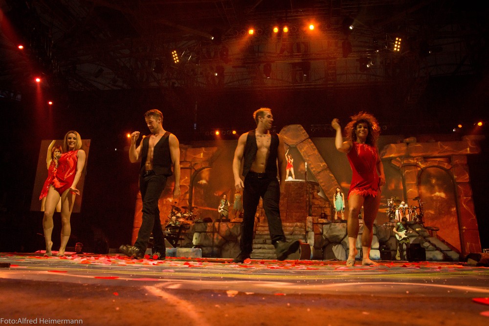 Atlantis Finale HalleWestfalen Gerry Weber Stadion Ausverkaufte Gerry weber Stadion beim Tourfinale von Atlantis in Halle/W. Mit Verspätung, weil man die Sommerzeit nicht eingeplant hatte, ging die Show los und es wurde eine schöne Abschlußshow. Die Crew hatte viele Andreafiguren verteilt, was Andrera dann überraschte und es gab einige weitere Abweichungen im Programm. |