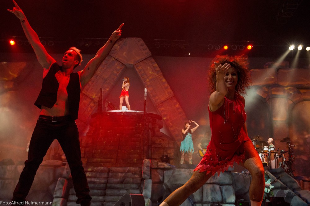 Atlantis Finale HalleWestfalen Gerry Weber Stadion Ausverkaufte Gerry weber Stadion beim Tourfinale von Atlantis in Halle/W. Mit Verspätung, weil man die Sommerzeit nicht eingeplant hatte, ging die Show los und es wurde eine schöne Abschlußshow. Die Crew hatte viele Andreafiguren verteilt, was Andrera dann überraschte und es gab einige weitere Abweichungen im Programm. |