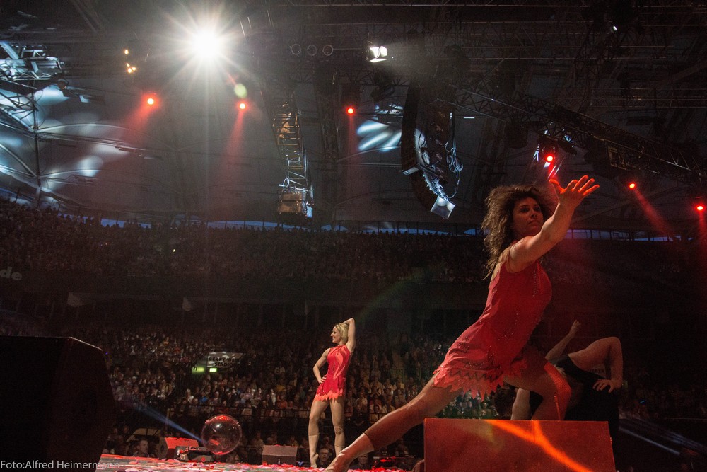 Atlantis Finale HalleWestfalen Gerry Weber Stadion Ausverkaufte Gerry weber Stadion beim Tourfinale von Atlantis in Halle/W. Mit Verspätung, weil man die Sommerzeit nicht eingeplant hatte, ging die Show los und es wurde eine schöne Abschlußshow. Die Crew hatte viele Andreafiguren verteilt, was Andrera dann überraschte und es gab einige weitere Abweichungen im Programm. |