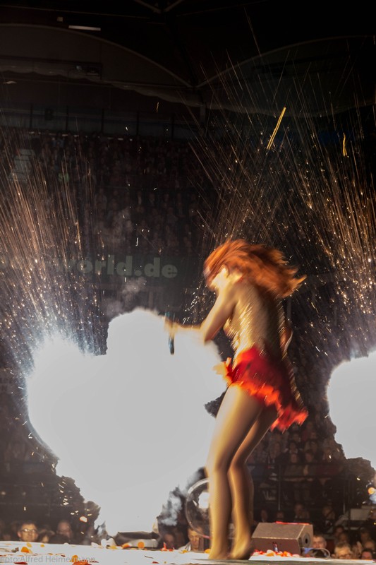 Atlantis Finale HalleWestfalen Gerry Weber Stadion Ausverkaufte Gerry weber Stadion beim Tourfinale von Atlantis in Halle/W. Mit Verspätung, weil man die Sommerzeit nicht eingeplant hatte, ging die Show los und es wurde eine schöne Abschlußshow. Die Crew hatte viele Andreafiguren verteilt, was Andrera dann überraschte und es gab einige weitere Abweichungen im Programm. |
