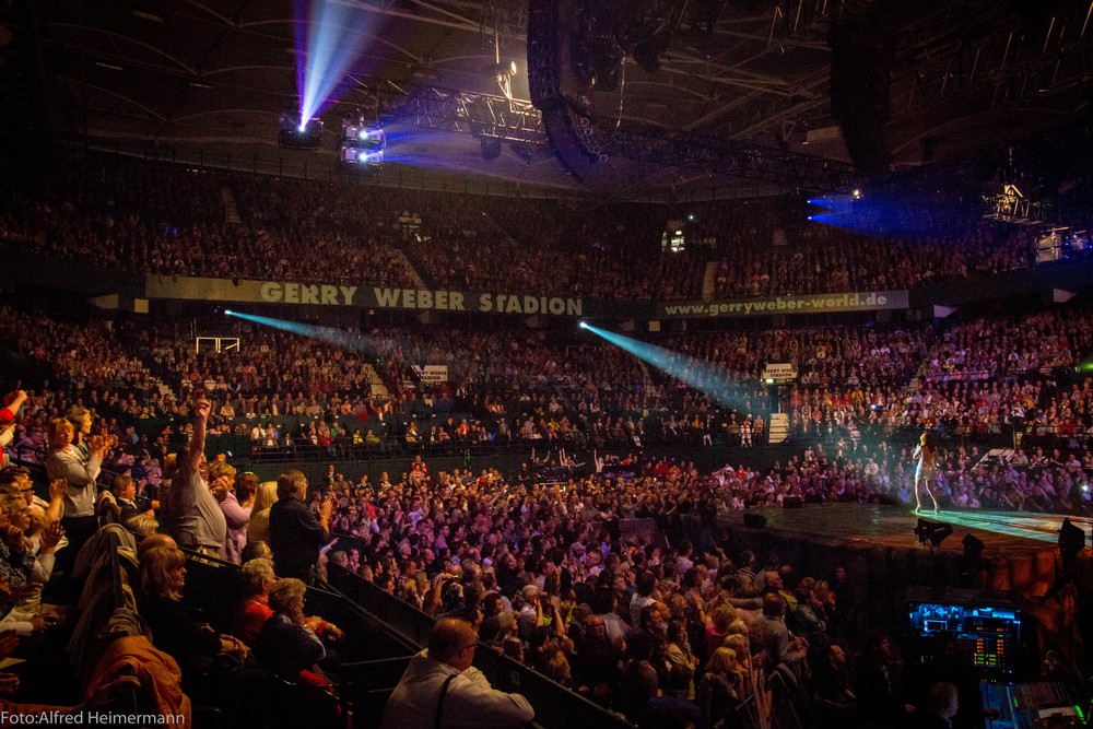 Atlantis Finale HalleWestfalen Gerry Weber Stadion Ausverkaufte Gerry weber Stadion beim Tourfinale von Atlantis in Halle/W. Mit Verspätung, weil man die Sommerzeit nicht eingeplant hatte, ging die Show los und es wurde eine schöne Abschlußshow. Die Crew hatte viele Andreafiguren verteilt, was Andrera dann überraschte und es gab einige weitere Abweichungen im Programm. |