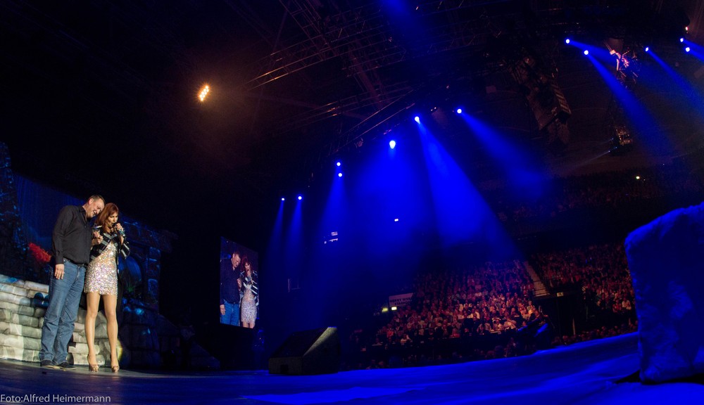 Atlantis Finale HalleWestfalen Gerry Weber Stadion Ausverkaufte Gerry weber Stadion beim Tourfinale von Atlantis in Halle/W. Mit Verspätung, weil man die Sommerzeit nicht eingeplant hatte, ging die Show los und es wurde eine schöne Abschlußshow. Die Crew hatte viele Andreafiguren verteilt, was Andrera dann überraschte und es gab einige weitere Abweichungen im Programm. |