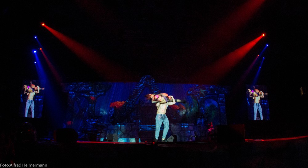 Atlantis Finale HalleWestfalen Gerry Weber Stadion Ausverkaufte Gerry weber Stadion beim Tourfinale von Atlantis in Halle/W. Mit Verspätung, weil man die Sommerzeit nicht eingeplant hatte, ging die Show los und es wurde eine schöne Abschlußshow. Die Crew hatte viele Andreafiguren verteilt, was Andrera dann überraschte und es gab einige weitere Abweichungen im Programm. |