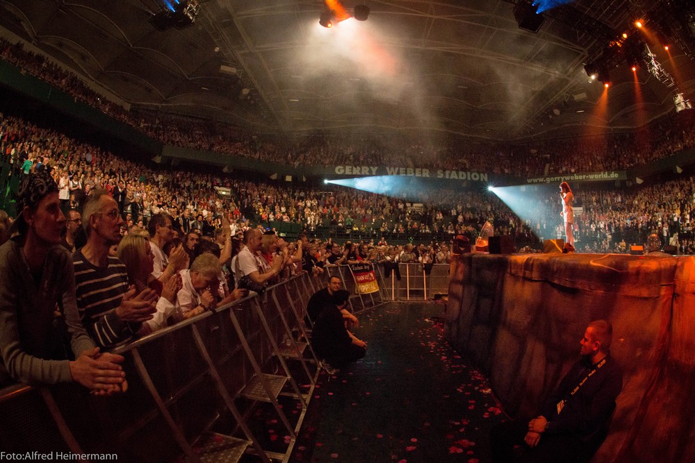 Atlantis Finale HalleWestfalen Gerry Weber Stadion Ausverkaufte Gerry weber Stadion beim Tourfinale von Atlantis in Halle/W. Mit Verspätung, weil man die Sommerzeit nicht eingeplant hatte, ging die Show los und es wurde eine schöne Abschlußshow. Die Crew hatte viele Andreafiguren verteilt, was Andrera dann überraschte und es gab einige weitere Abweichungen im Programm. |