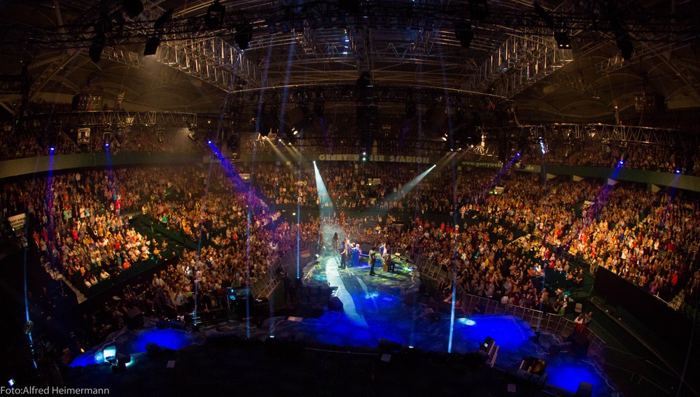 Atlantis Finale HalleWestfalen Gerry Weber Stadion Ausverkaufte Gerry weber Stadion beim Tourfinale von Atlantis in Halle/W. Mit Verspätung, weil man die Sommerzeit nicht eingeplant hatte, ging die Show los und es wurde eine schöne Abschlußshow. Die Crew hatte viele Andreafiguren verteilt, was Andrera dann überraschte und es gab einige weitere Abweichungen im Programm. |
