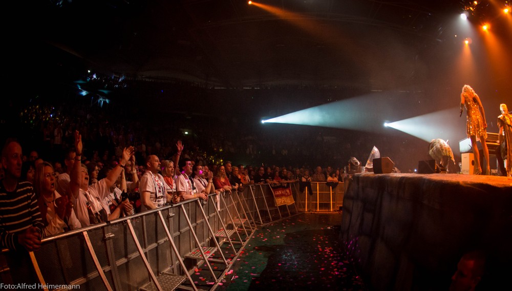 Atlantis Finale HalleWestfalen Gerry Weber Stadion Ausverkaufte Gerry weber Stadion beim Tourfinale von Atlantis in Halle/W. Mit Verspätung, weil man die Sommerzeit nicht eingeplant hatte, ging die Show los und es wurde eine schöne Abschlußshow. Die Crew hatte viele Andreafiguren verteilt, was Andrera dann überraschte und es gab einige weitere Abweichungen im Programm. |