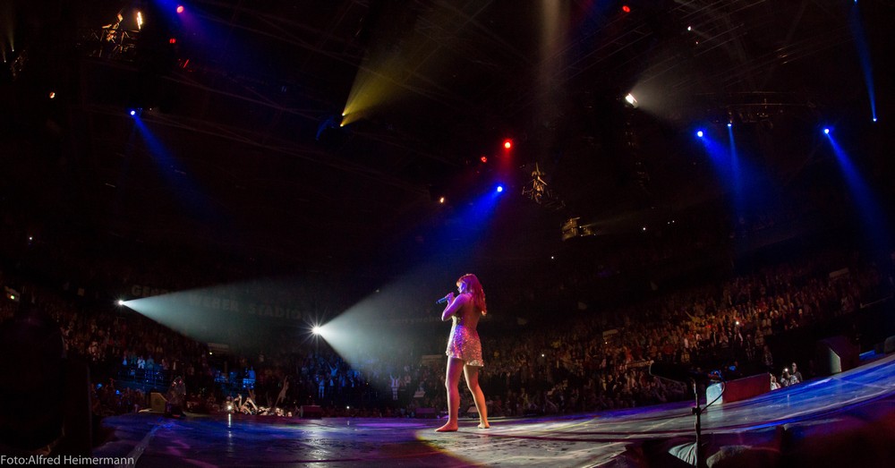 Atlantis Finale HalleWestfalen Gerry Weber Stadion Ausverkaufte Gerry weber Stadion beim Tourfinale von Atlantis in Halle/W. Mit Verspätung, weil man die Sommerzeit nicht eingeplant hatte, ging die Show los und es wurde eine schöne Abschlußshow. Die Crew hatte viele Andreafiguren verteilt, was Andrera dann überraschte und es gab einige weitere Abweichungen im Programm. |