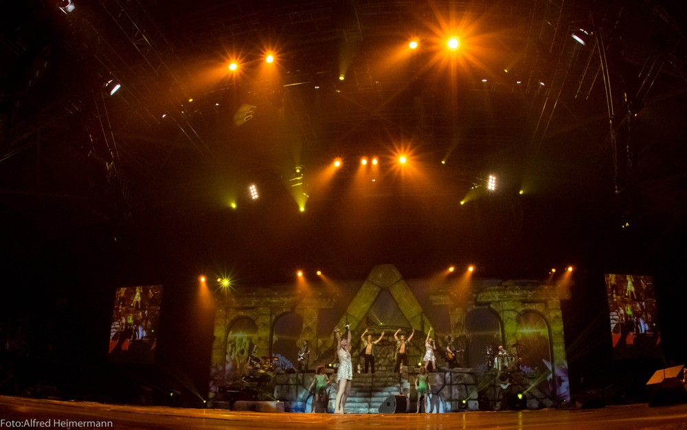 Atlantis Finale HalleWestfalen Gerry Weber Stadion Ausverkaufte Gerry weber Stadion beim Tourfinale von Atlantis in Halle/W. Mit Verspätung, weil man die Sommerzeit nicht eingeplant hatte, ging die Show los und es wurde eine schöne Abschlußshow. Die Crew hatte viele Andreafiguren verteilt, was Andrera dann überraschte und es gab einige weitere Abweichungen im Programm. |