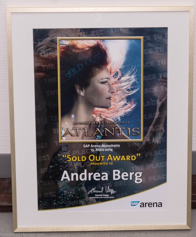 Ausverkaufte SAP-Arena in Mannheim, wofür Andrea auch wieder mit einem Award ausgezeichnet wurde.