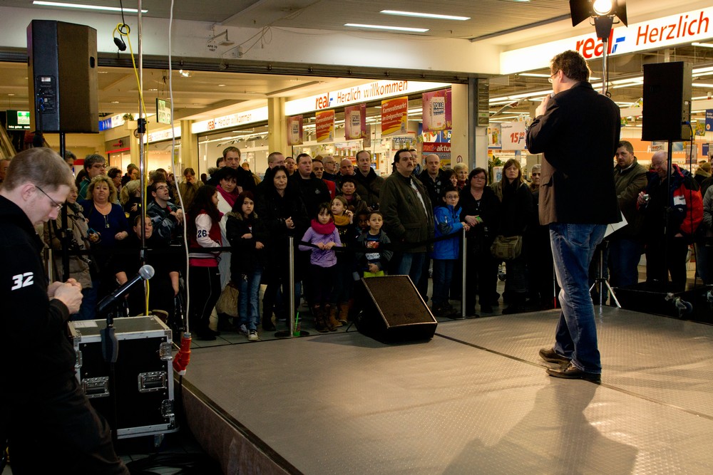 Im Einkaufszentrum HUMA präsentierte Uwe Hübner die CD der DJ-Htparade, Folge 2 und hatte die Künstler, Franziska, Michel Fischer und Christian Anders mit dabei, die alle ein paar Lieder live sangen.