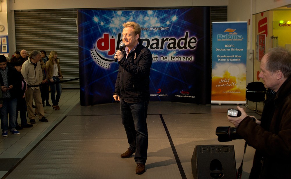 Im Einkaufszentrum HUMA präsentierte Uwe Hübner die CD der DJ-Htparade, Folge 2 und hatte die Künstler, Franziska, Michel Fischer und Christian Anders mit dabei, die alle ein paar Lieder live sangen.