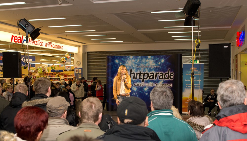 Im Einkaufszentrum HUMA präsentierte Uwe Hübner die CD der DJ-Htparade, Folge 2 und hatte die Künstler, Franziska, Michel Fischer und Christian Anders mit dabei, die alle ein paar Lieder live sangen.