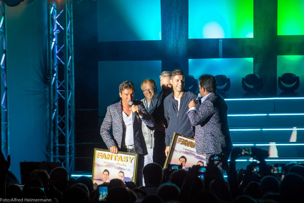 Fantasy Sommernacht 2015 Aspach-Fautenau Ca. 3500 Fantasyfans waren zur Sommernachtsparty an das Stadion in der Fautenau in Aspach gekommen und feierten bei schönem Wetter eine Party mit Tanja Lasch, Sandro und Fantasy. Die Pause von Fantasy dauerte etwas lang , was dass Publikum mit Pfiffen monierte. Stimmung war ganz toll und Fantasy hatte gute Laune und witzige Sprüche. |
