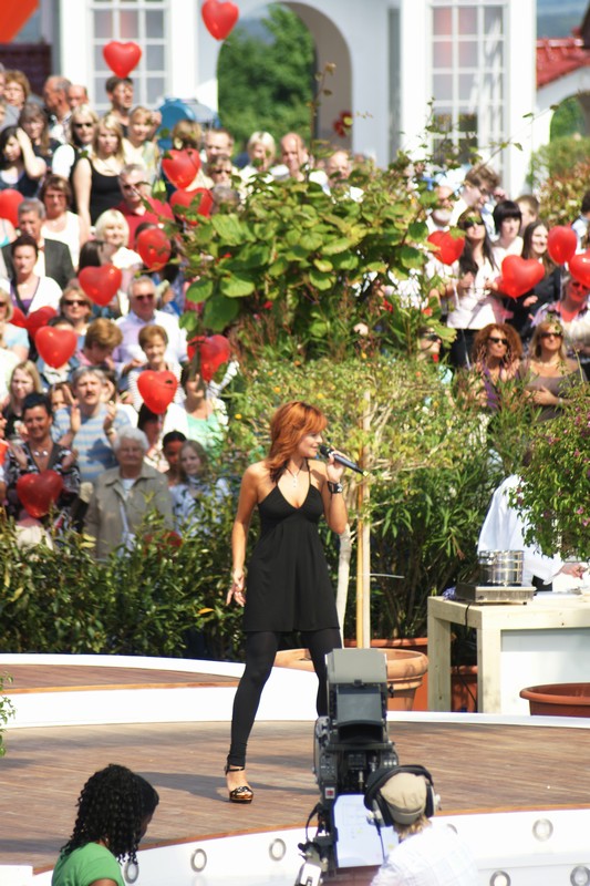 FernsehgartenMai2009 ZDF-Fernsehgarten 5000 Besucher beim 1. Fernsehgarten 2009 , am Muttertag den 10.5.2009. Andrea Berg, Bap, Anna Maria Kaufmann, Die Zipfelbuben, Marry Roos, Rubettes, Paul Poth und viele mehr waren dabei auch wieder Moderatorin Andrea Kiwel: |