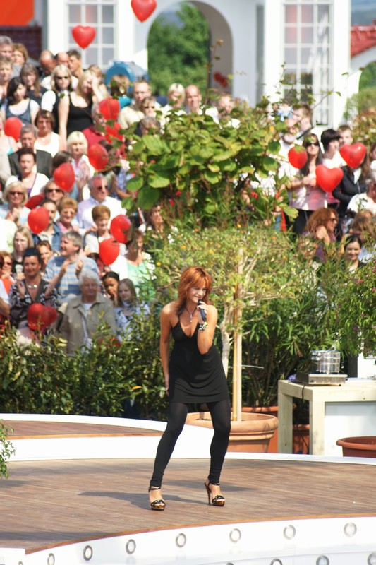 FernsehgartenMai2009 ZDF-Fernsehgarten 5000 Besucher beim 1. Fernsehgarten 2009 , am Muttertag den 10.5.2009. Andrea Berg, Bap, Anna Maria Kaufmann, Die Zipfelbuben, Marry Roos, Rubettes, Paul Poth und viele mehr waren dabei auch wieder Moderatorin Andrea Kiwel: |