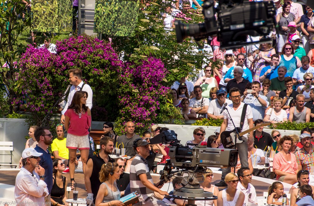 Fernsehgarten Pfingsten ZDF-Mainz Bei 35° auf dem Fernsehgartengelände kamen alle Gäste und Zuschauer zum Schwitzen, Wolkenfrei hatte ihren ersten Auftritt im Fernsehgarten. |