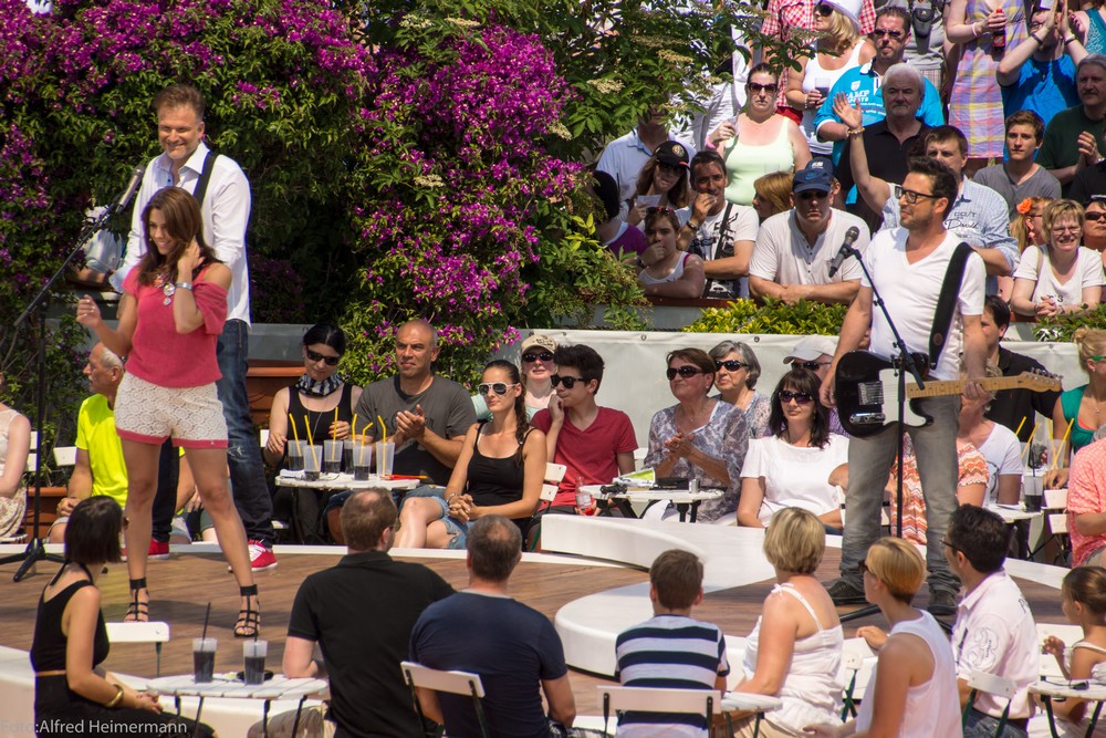 Fernsehgarten Pfingsten ZDF-Mainz Bei 35° auf dem Fernsehgartengelände kamen alle Gäste und Zuschauer zum Schwitzen, Wolkenfrei hatte ihren ersten Auftritt im Fernsehgarten. |