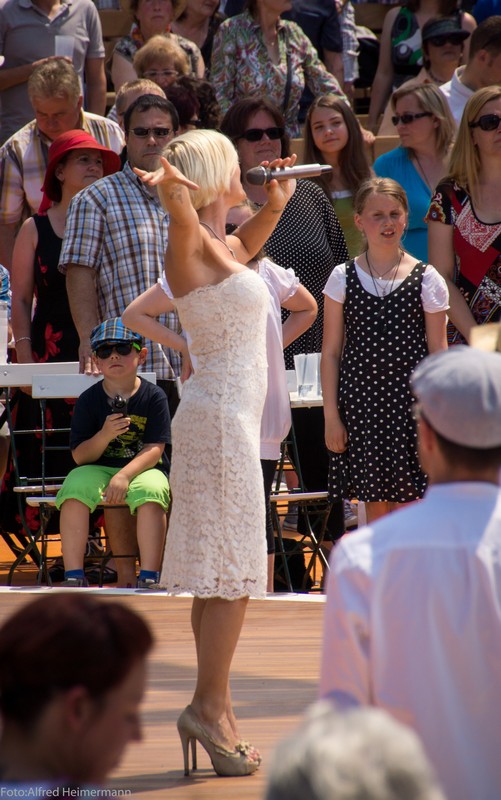 Fernsehgarten Pfingsten ZDF-Mainz Bei 35° auf dem Fernsehgartengelände kamen alle Gäste und Zuschauer zum Schwitzen, Wolkenfrei hatte ihren ersten Auftritt im Fernsehgarten. |