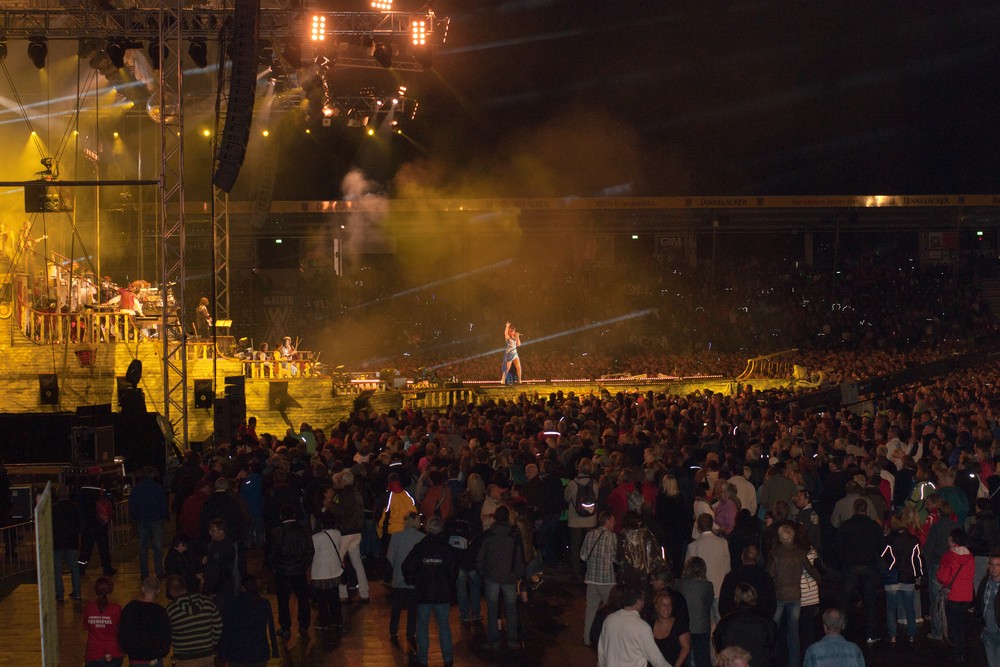15000 Besucher beim 7. Heimspiel Openair von Andrea Berg. Im Vorprogramm gab es eine kurze Unterbrechung wegen einem häftigen Gewitter mit Regengüssen. Als Andrea auf die Bühne trat, lieb es trocken und es war eine tolle Show.