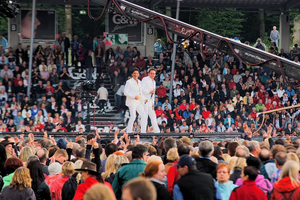 15000 Besucher beim 7. Heimspiel Openair von Andrea Berg. Im Vorprogramm gab es eine kurze Unterbrechung wegen einem häftigen Gewitter mit Regengüssen. Als Andrea auf die Bühne trat, lieb es trocken und es war eine tolle Show.