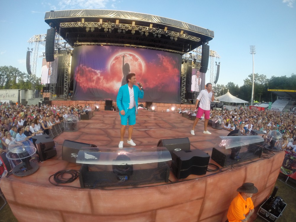 Heimspiel 2015-Samstag Aspach-Fautenhau Wieder 15000 Besucher beim 11. Heimspiel Teil 2 am Samstag den 18.7.2015. Wieder spielte das Wetter mit. Andrea erhielt von DJ Bobo, Uli und Florian Silbereisen einen Arward zum 11. Heimspiel geschenkt. |