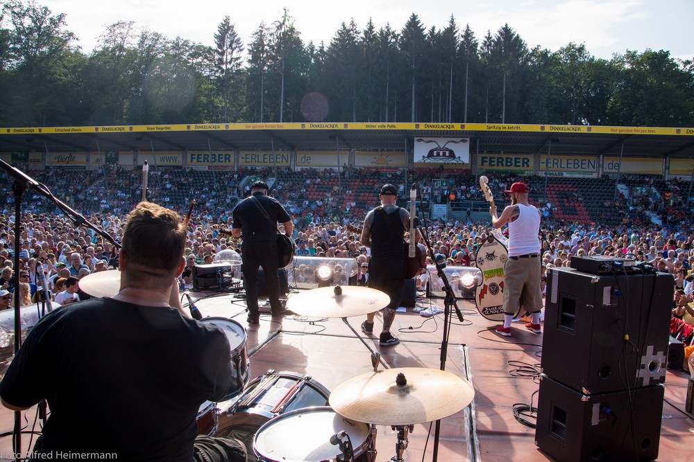 Heimspiel 2015-Samstag Aspach-Fautenhau Wieder 15000 Besucher beim 11. Heimspiel Teil 2 am Samstag den 18.7.2015. Wieder spielte das Wetter mit. Andrea erhielt von DJ Bobo, Uli und Florian Silbereisen einen Arward zum 11. Heimspiel geschenkt. |
