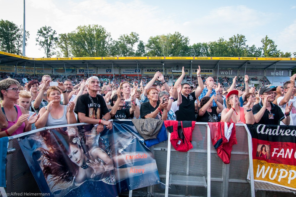Heimspiel 2015-Samstag Aspach-Fautenhau Wieder 15000 Besucher beim 11. Heimspiel Teil 2 am Samstag den 18.7.2015. Wieder spielte das Wetter mit. Andrea erhielt von DJ Bobo, Uli und Florian Silbereisen einen Arward zum 11. Heimspiel geschenkt. |
