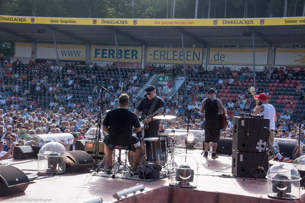 Heimspiel 2015-Samstag Aspach-Fautenhau Wieder 15000 Besucher beim 11. Heimspiel Teil 2 am Samstag den 18.7.2015. Wieder spielte das Wetter mit. Andrea erhielt von DJ Bobo, Uli und Florian Silbereisen einen Arward zum 11. Heimspiel geschenkt. |