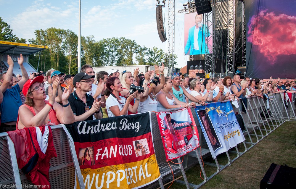 Heimspiel 2015-Samstag Aspach-Fautenhau Wieder 15000 Besucher beim 11. Heimspiel Teil 2 am Samstag den 18.7.2015. Wieder spielte das Wetter mit. Andrea erhielt von DJ Bobo, Uli und Florian Silbereisen einen Arward zum 11. Heimspiel geschenkt. |