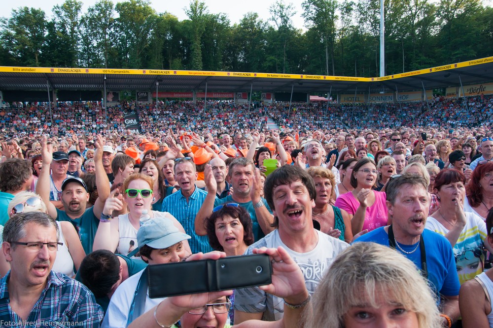 Heimspiel 2015-Samstag Aspach-Fautenhau Wieder 15000 Besucher beim 11. Heimspiel Teil 2 am Samstag den 18.7.2015. Wieder spielte das Wetter mit. Andrea erhielt von DJ Bobo, Uli und Florian Silbereisen einen Arward zum 11. Heimspiel geschenkt. |