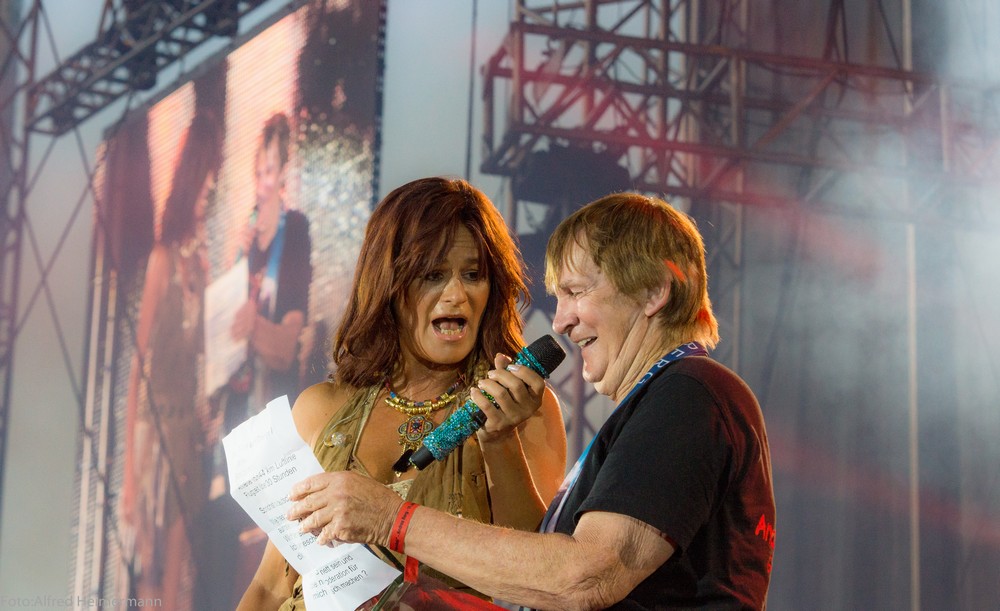 Heimspiel 2015-Samstag Aspach-Fautenhau Wieder 15000 Besucher beim 11. Heimspiel Teil 2 am Samstag den 18.7.2015. Wieder spielte das Wetter mit. Andrea erhielt von DJ Bobo, Uli und Florian Silbereisen einen Arward zum 11. Heimspiel geschenkt. |