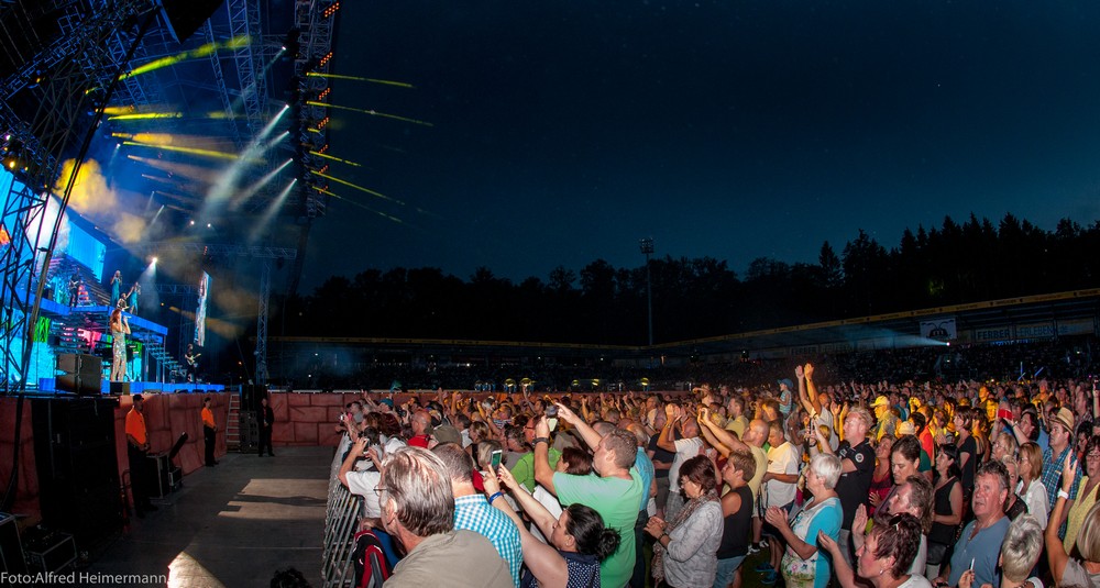 Heimspiel 2015-Samstag Aspach-Fautenhau Wieder 15000 Besucher beim 11. Heimspiel Teil 2 am Samstag den 18.7.2015. Wieder spielte das Wetter mit. Andrea erhielt von DJ Bobo, Uli und Florian Silbereisen einen Arward zum 11. Heimspiel geschenkt. |