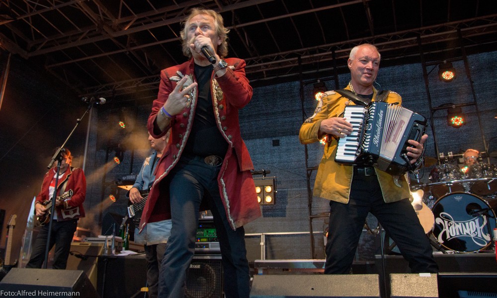 2000Besucher warenzum öhner Opeanir auf das Openairgeländevom otel Landsknecht gekommen und feieren denSieg der Fußballnationalmanschaft über Frakreich im Viertelfinal der WM. Das Blasorchester Uckerath eröffnete das Event um 19 Uhr, Bella Vista brachte die Menge ab 19:30 Uhr mit ihren Partyliedern in Stimmung, sodass es die Höhner dann um 20:30 Uhr leicht hatten, die Stimmung noch weiter anzuheizen.