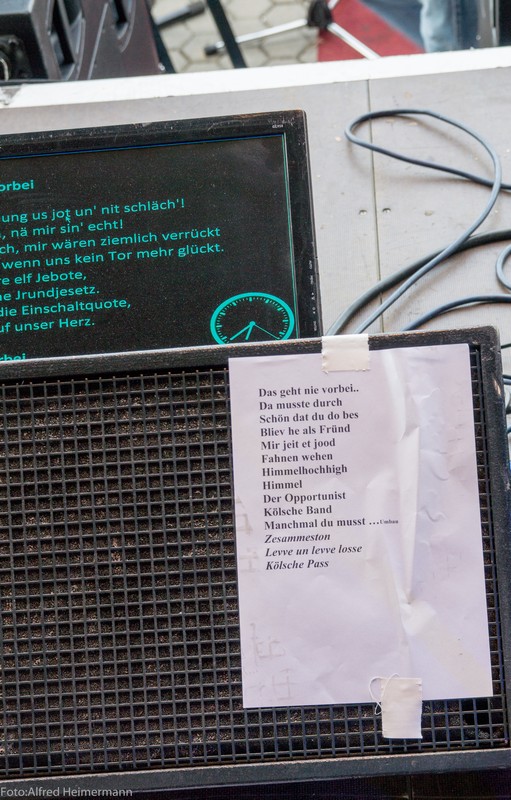 2000Besucher warenzum öhner Opeanir auf das Openairgeländevom otel Landsknecht gekommen und feieren denSieg der Fußballnationalmanschaft über Frakreich im Viertelfinal der WM. Das Blasorchester Uckerath eröffnete das Event um 19 Uhr, Bella Vista brachte die Menge ab 19:30 Uhr mit ihren Partyliedern in Stimmung, sodass es die Höhner dann um 20:30 Uhr leicht hatten, die Stimmung noch weiter anzuheizen.