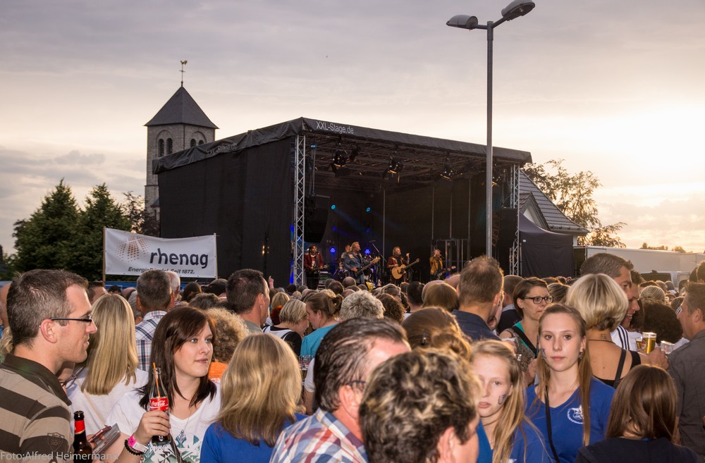2000Besucher warenzum öhner Opeanir auf das Openairgeländevom otel Landsknecht gekommen und feieren denSieg der Fußballnationalmanschaft über Frakreich im Viertelfinal der WM. Das Blasorchester Uckerath eröffnete das Event um 19 Uhr, Bella Vista brachte die Menge ab 19:30 Uhr mit ihren Partyliedern in Stimmung, sodass es die Höhner dann um 20:30 Uhr leicht hatten, die Stimmung noch weiter anzuheizen.