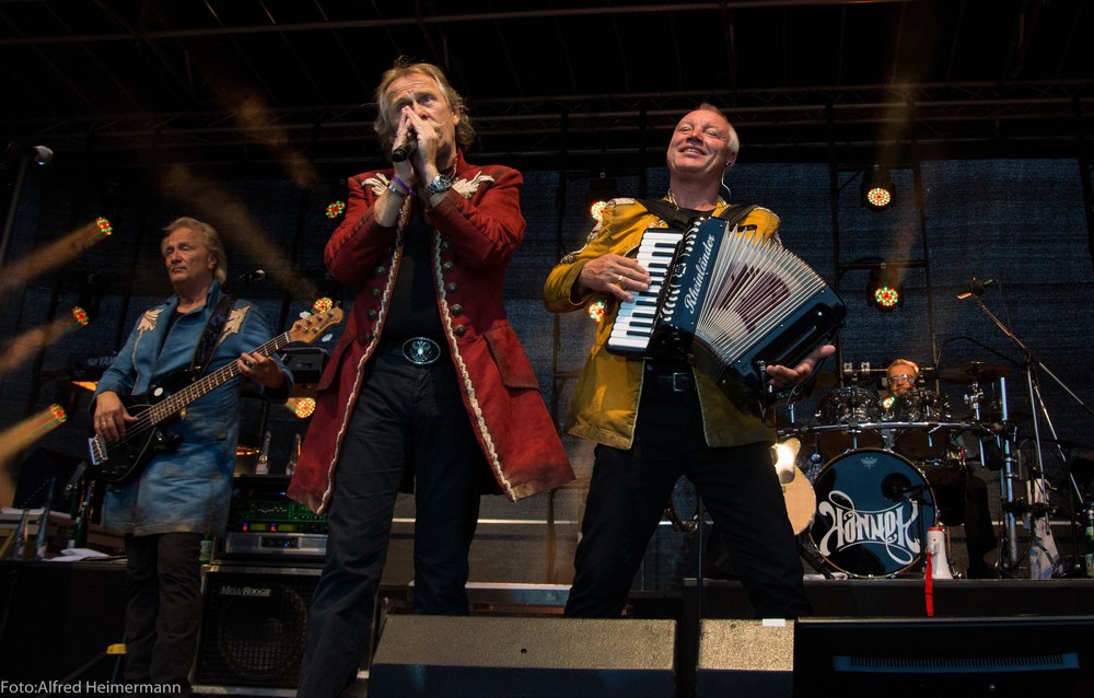 2000Besucher warenzum öhner Opeanir auf das Openairgeländevom otel Landsknecht gekommen und feieren denSieg der Fußballnationalmanschaft über Frakreich im Viertelfinal der WM. Das Blasorchester Uckerath eröffnete das Event um 19 Uhr, Bella Vista brachte die Menge ab 19:30 Uhr mit ihren Partyliedern in Stimmung, sodass es die Höhner dann um 20:30 Uhr leicht hatten, die Stimmung noch weiter anzuheizen.
